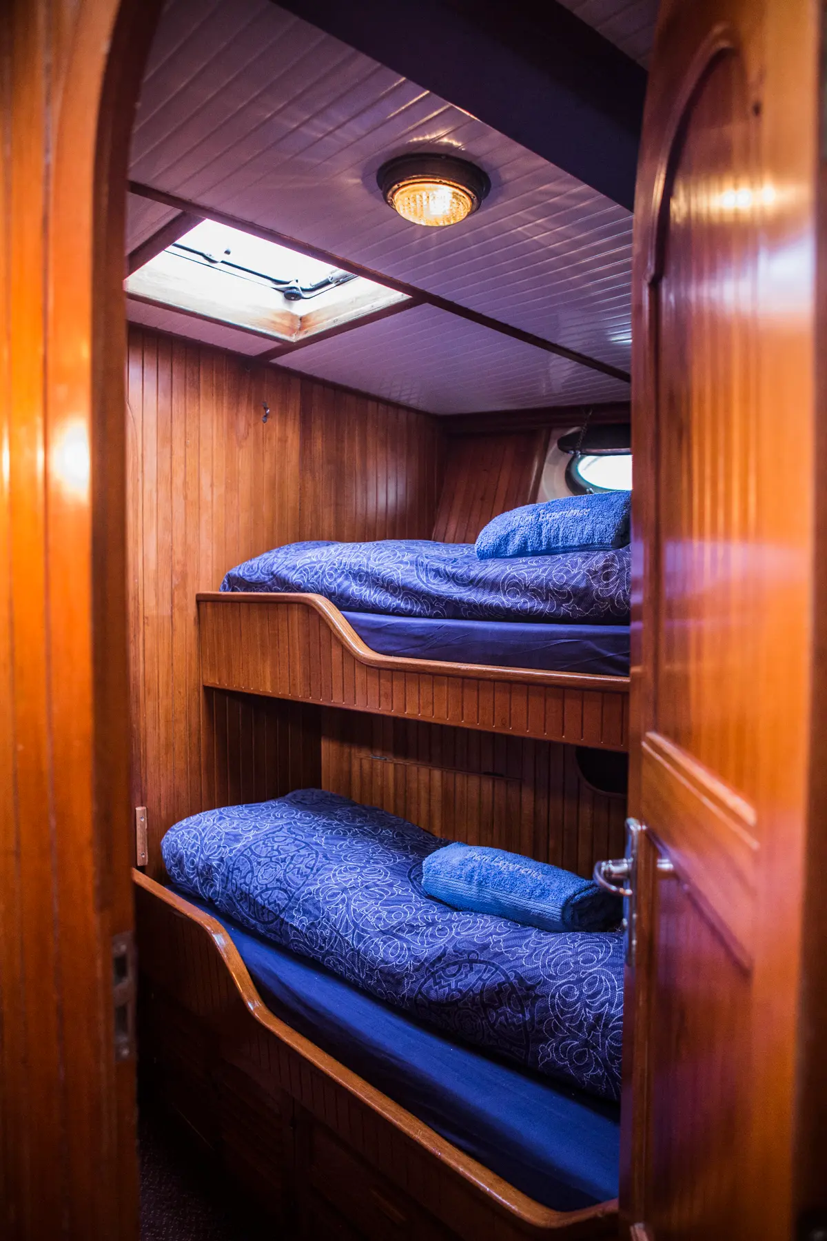 Våre to akterlugarer (nr. 3 og 4) har begge dobbeltsenger og rikelig med lagringsplass. Å våkne om morgenen med utsikt til havet er uforglemmelig.
